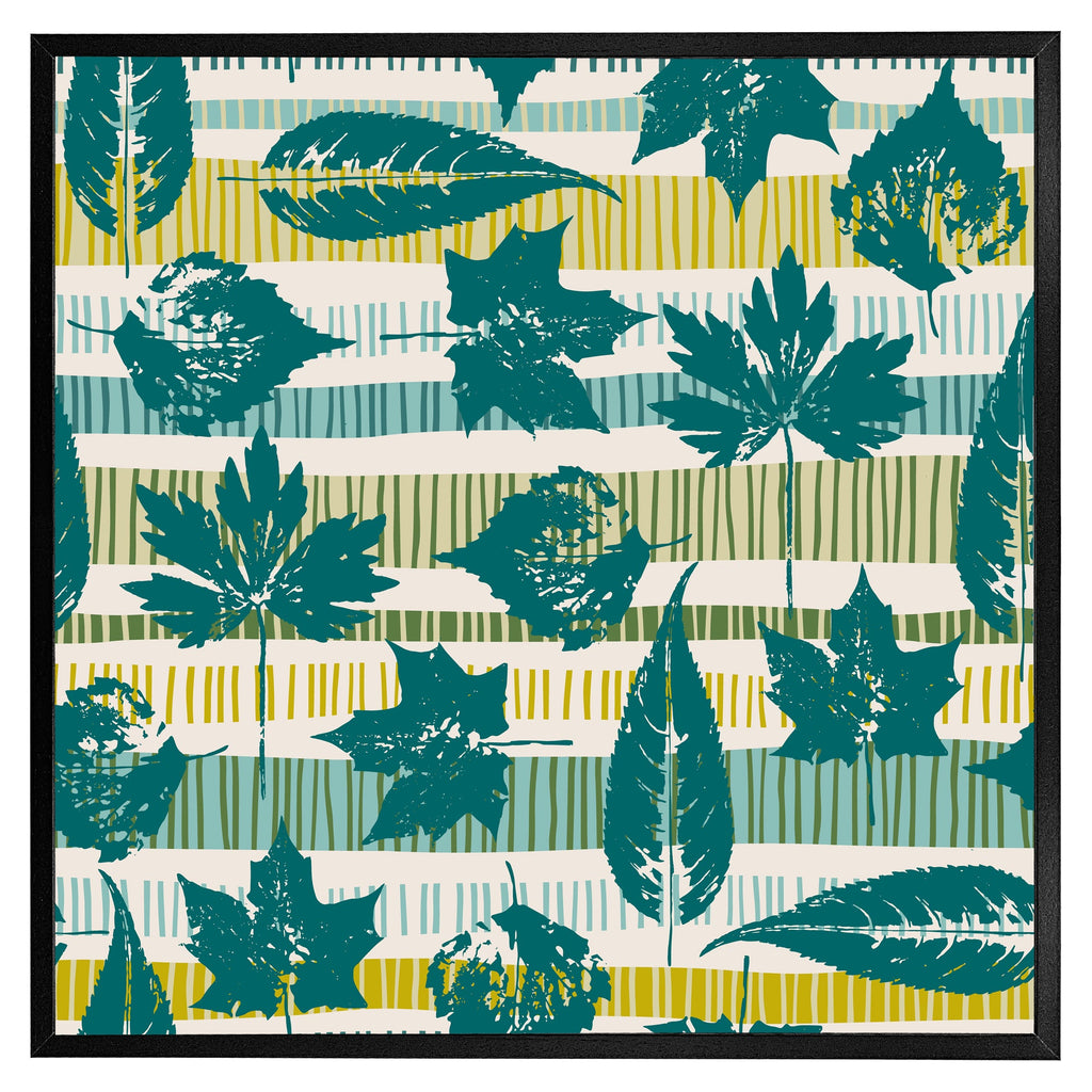 Autumn pattern with leaves on geometric background (Picutre Frame)