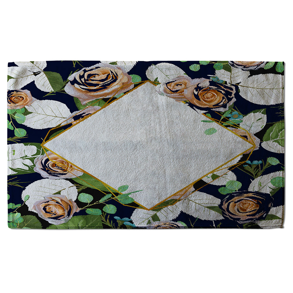 Decorative Flowers On Navy Background (Bath Towel)