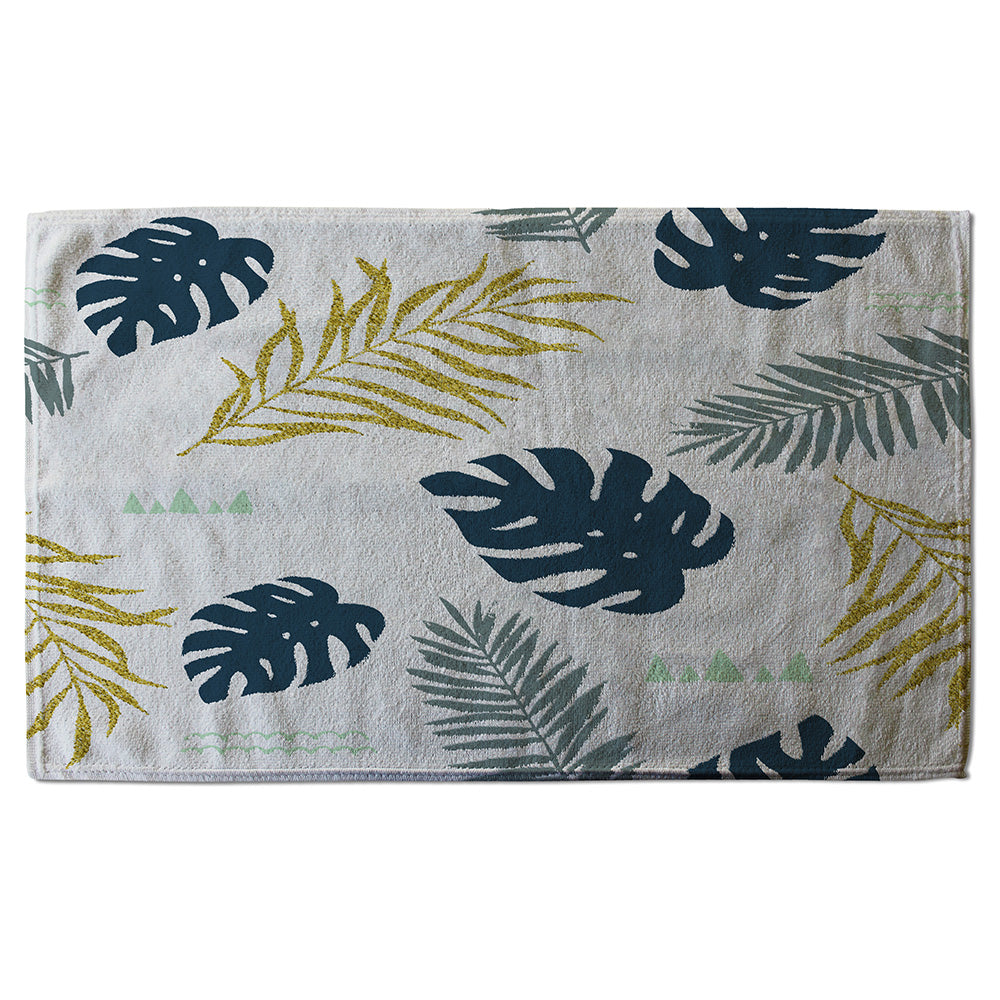 Gold Glitter & Navy Leaves (Bath Towel)