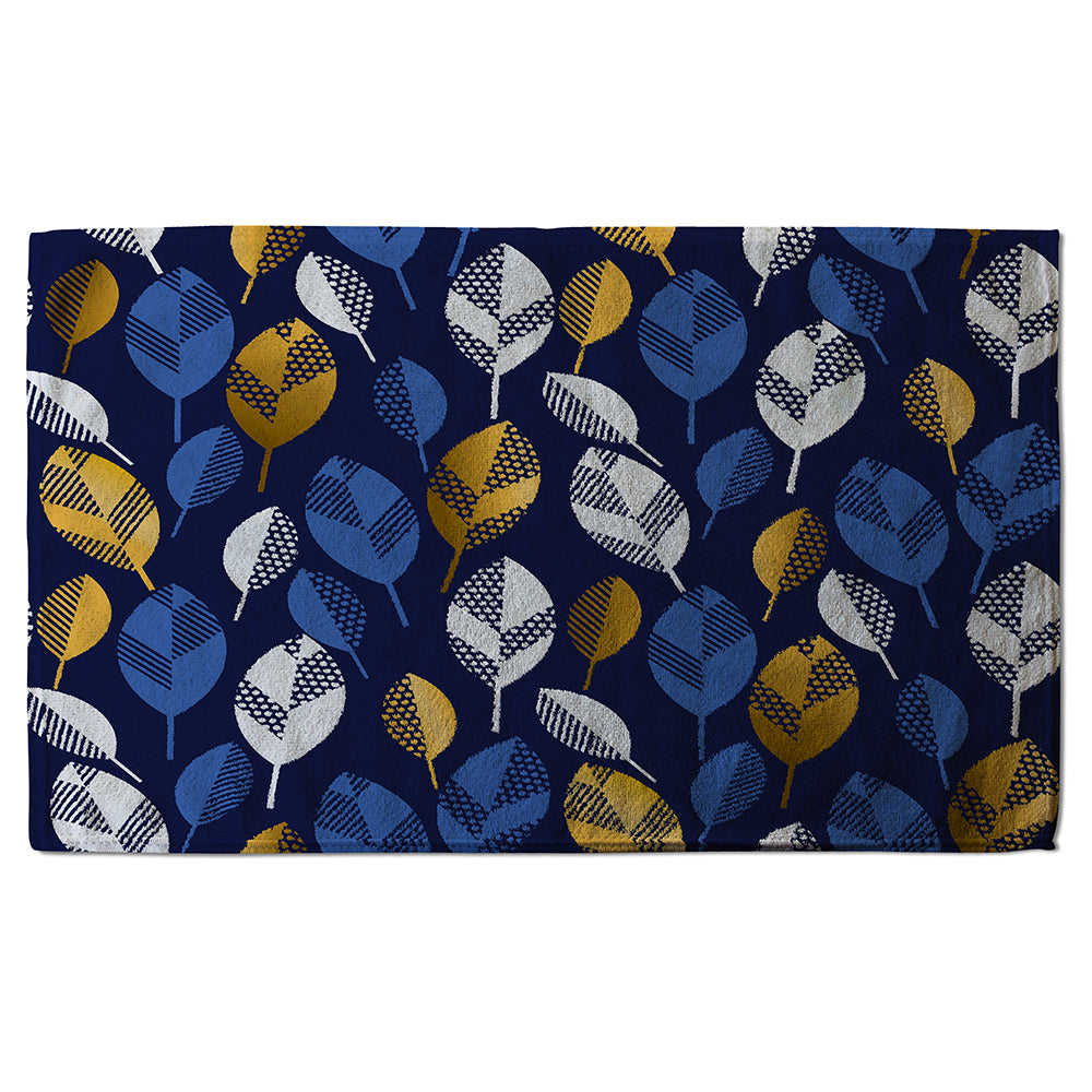 White, Blue & Gold Leaves on Navy Background (Bath Towel)
