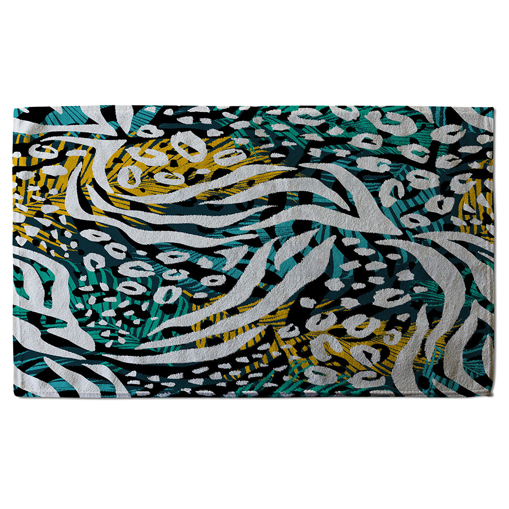 Geometric Shape & Leaf Print in Yellow & Green (Bath Towel)