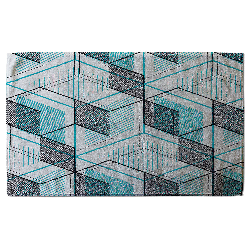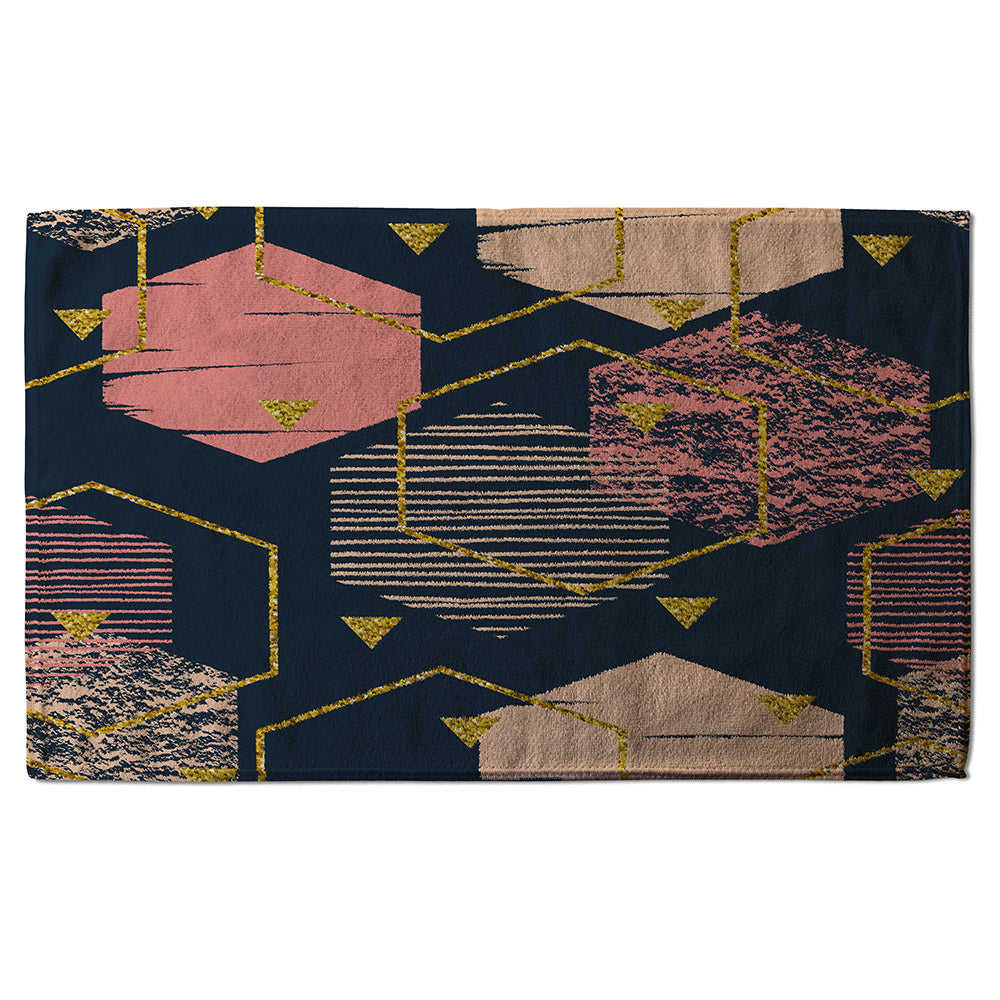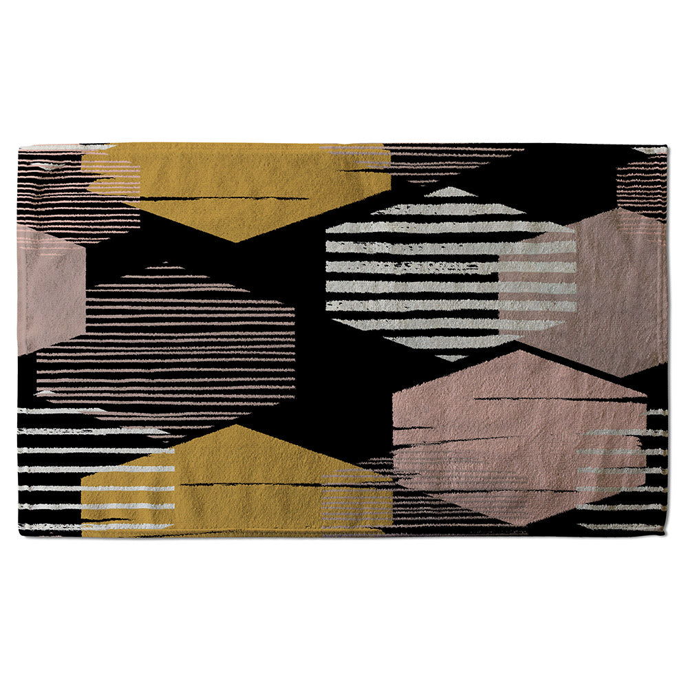 Abstract geometric roughly hatched shapes colored with hand drawn brush stokes (Bath Towel)