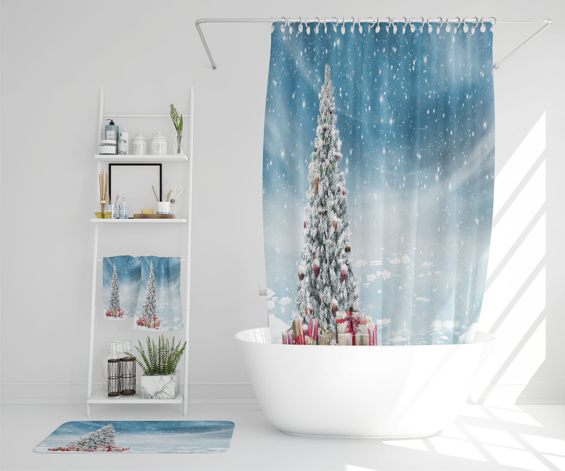 Beautiful Decorated Snowed In Christmas Tree (Bathroom Set)