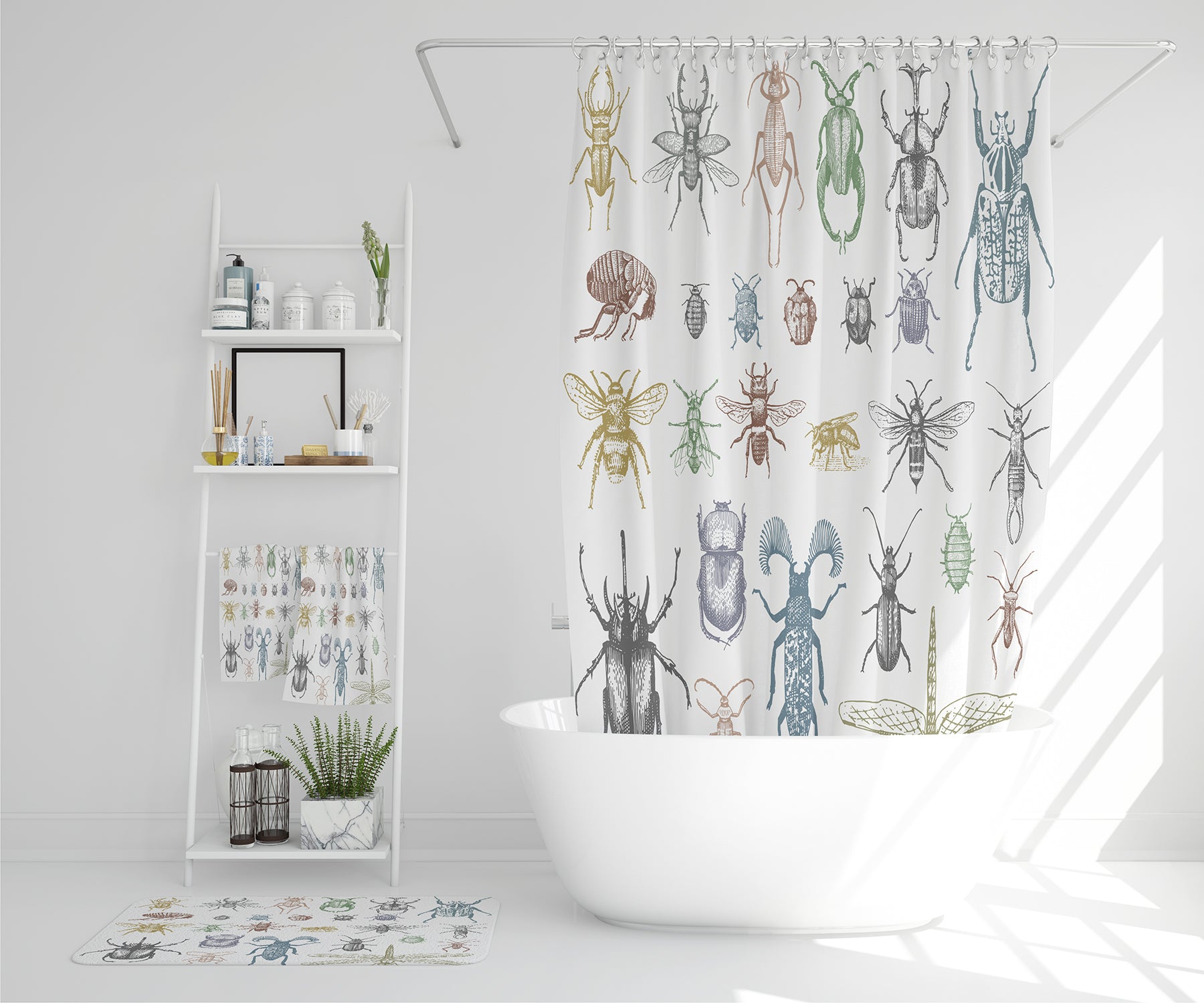 big set of insects bugs beetles and bees many species in vintage old hand drawn style (Bathroom Set)