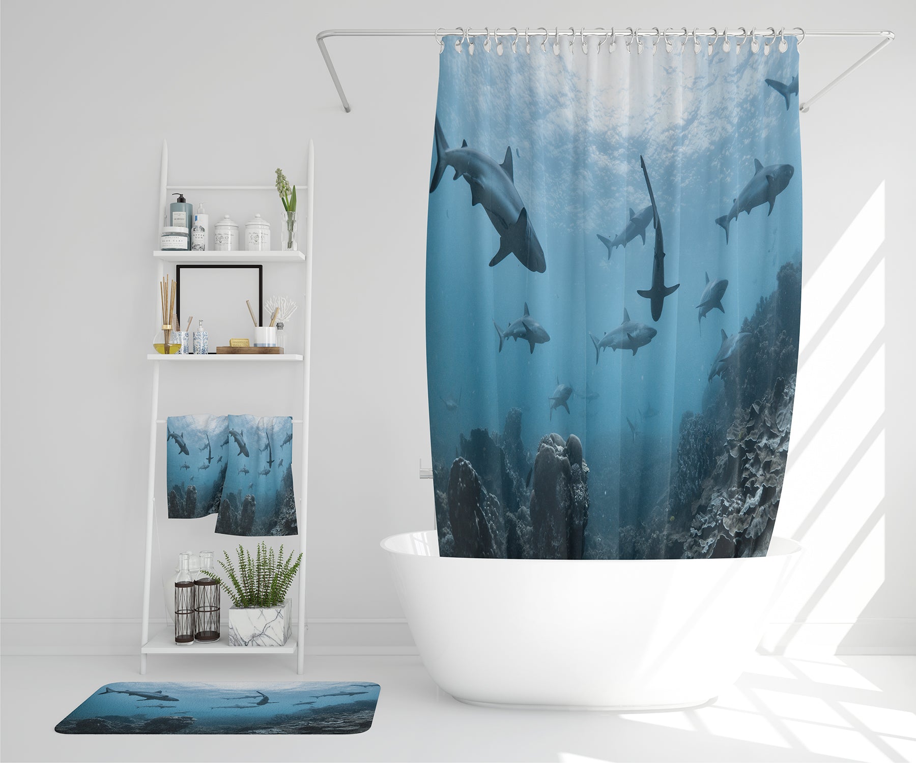 Schooling grey reef sharks, Ningaloo reef, Western Australia (Bathroom Set)