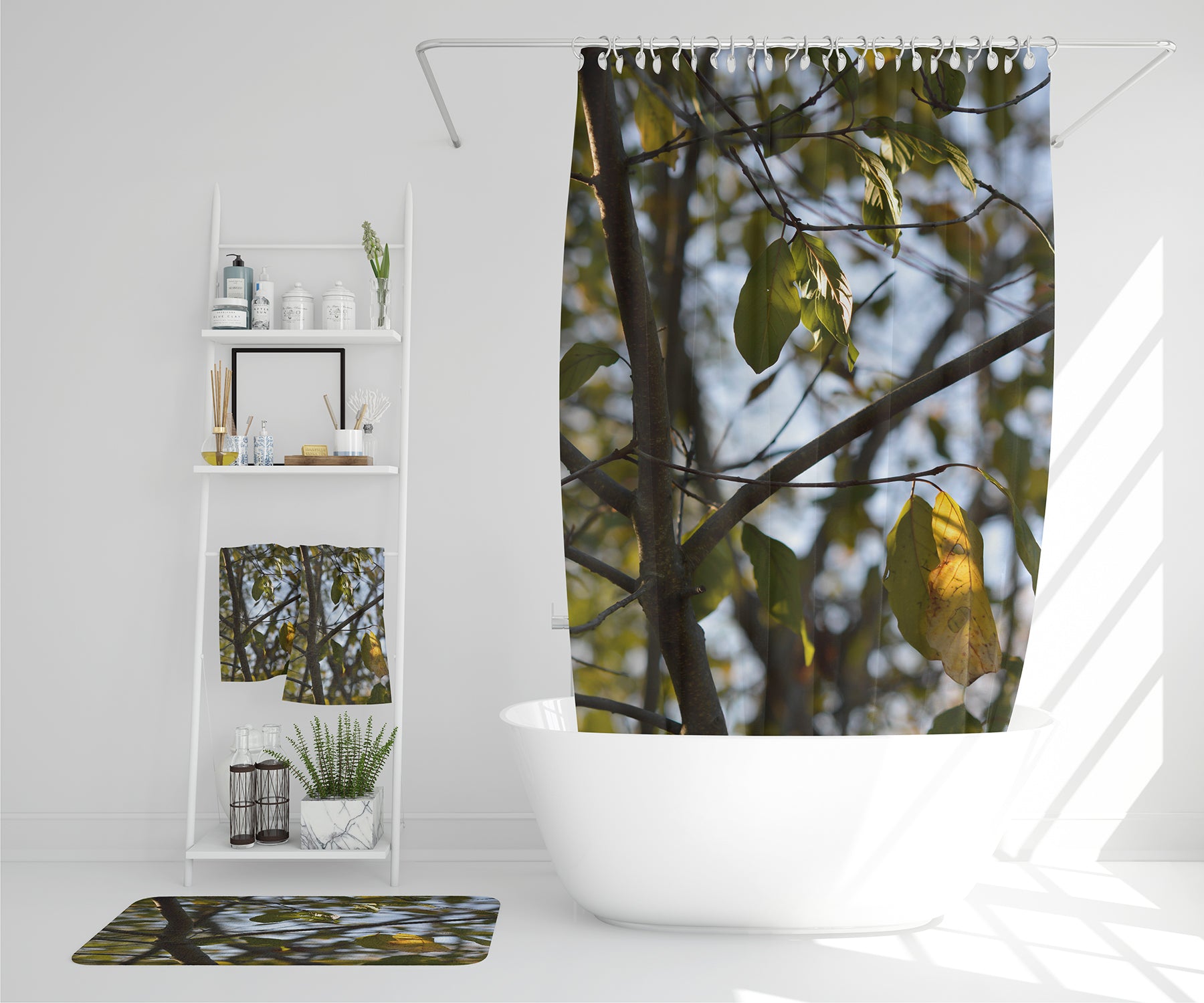 Tree leaves in the sunshine nature photography, leaves and branches (Bathroom Set)