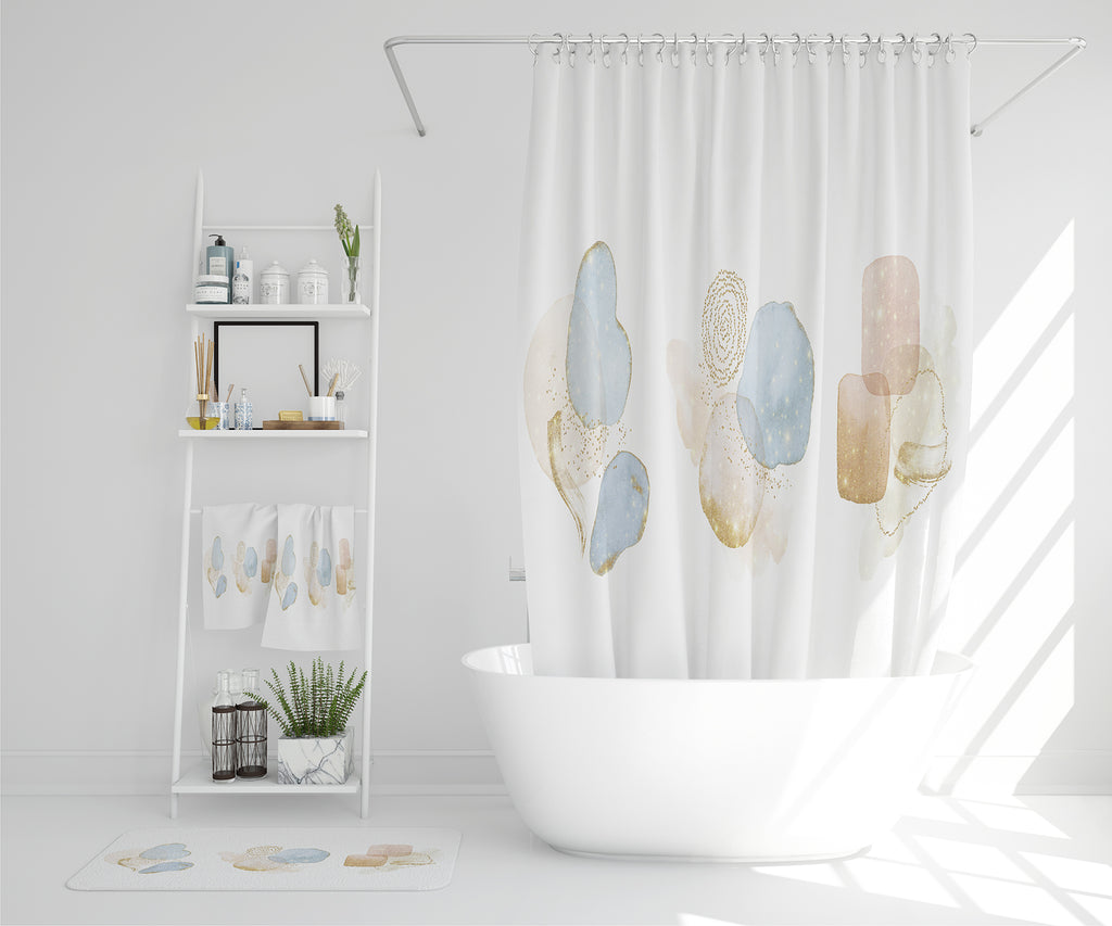 glitter shiny dreamy. Blush, blue, white, beige watercolor illustration & elements (Bathroom Set)