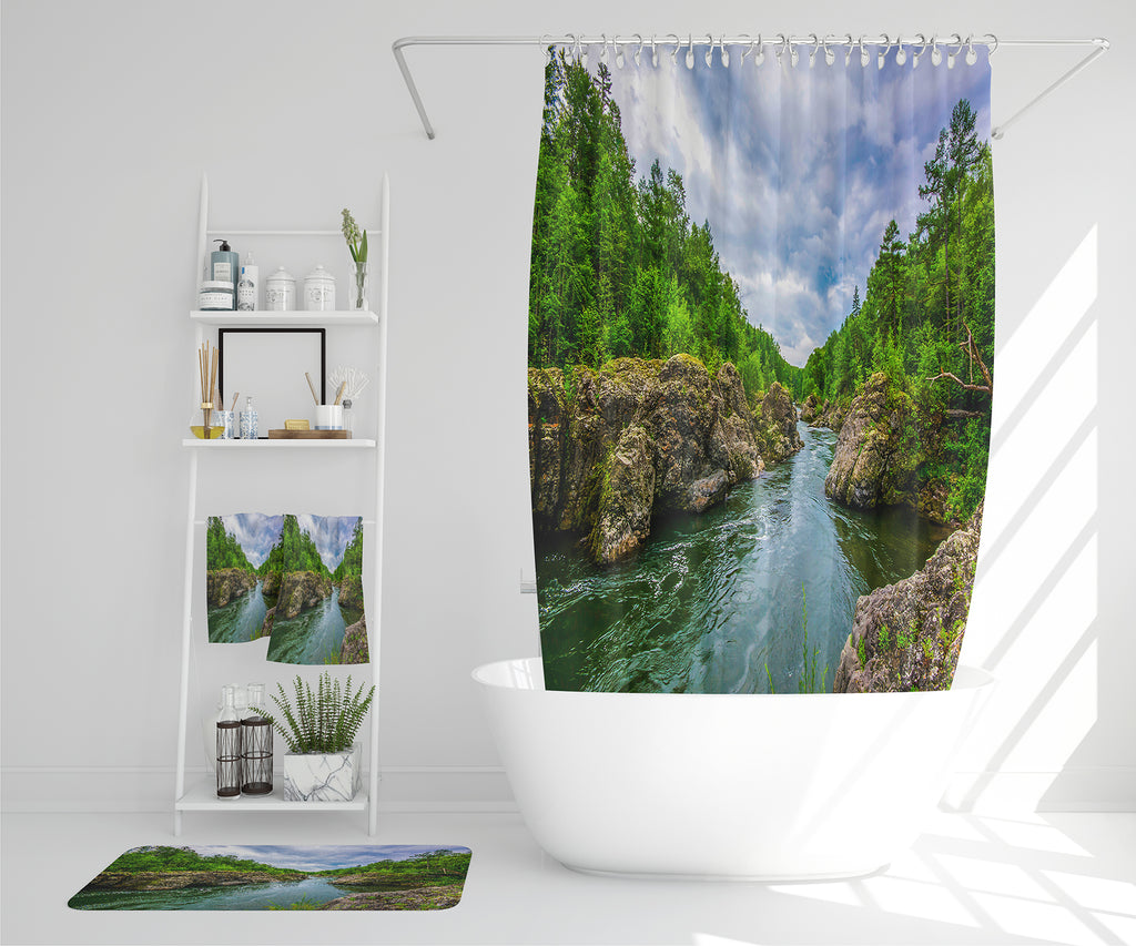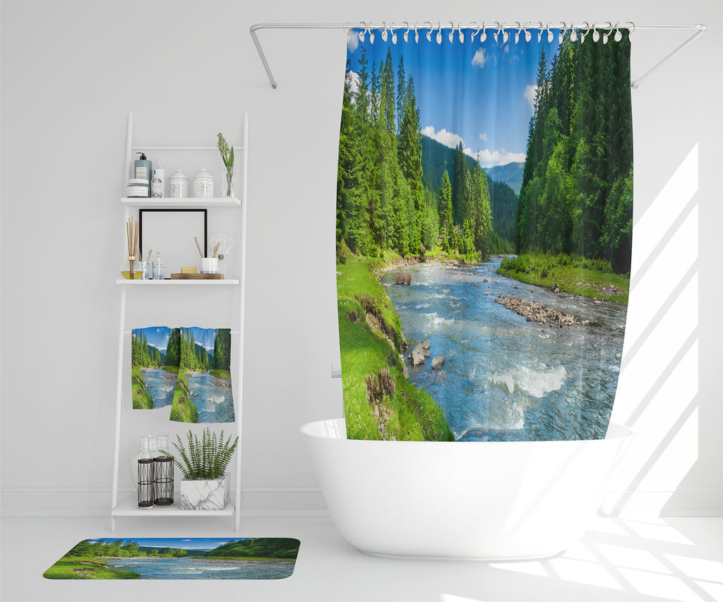 River in mountain forest landscape (Bathroom Set)