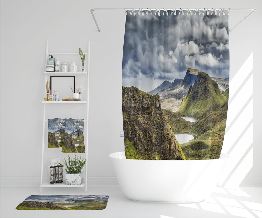 Panorama of Quiraing mountains sunset at Isle of Skye, Scottish highlands (Bathroom Set)