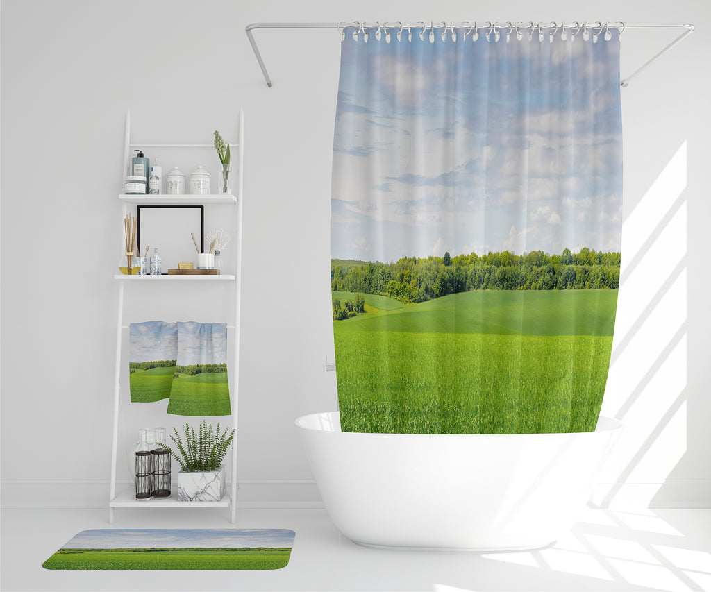 Summer landscape with hilly green field and forest in the distance (Bathroom Set)