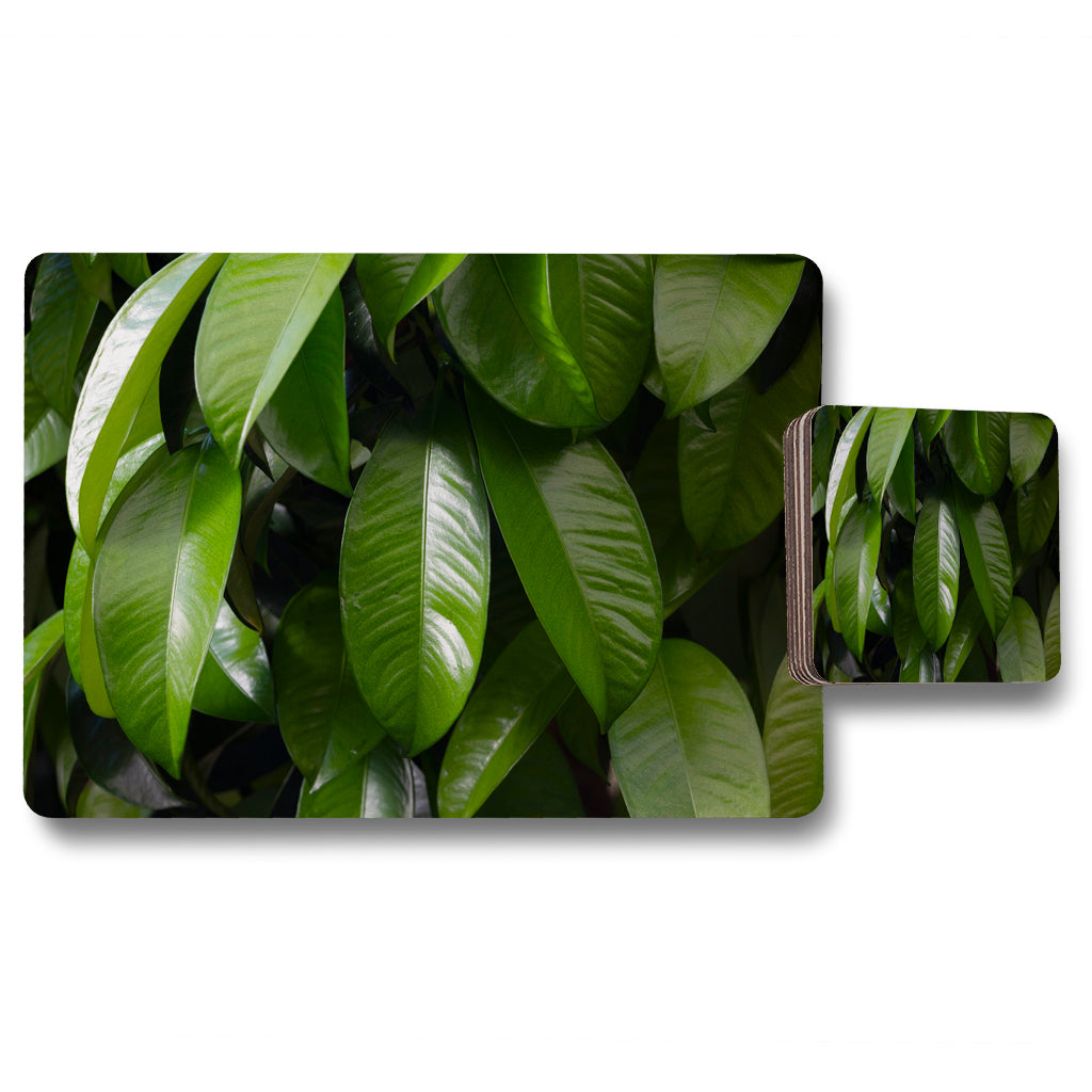 Closeup of beautiful glossy green leaves (Placemat & Coaster Set)