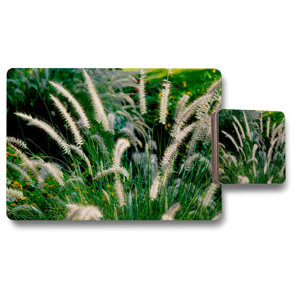 decorative cat tail grass growing along a walkway (Placemat & Coaster Set)