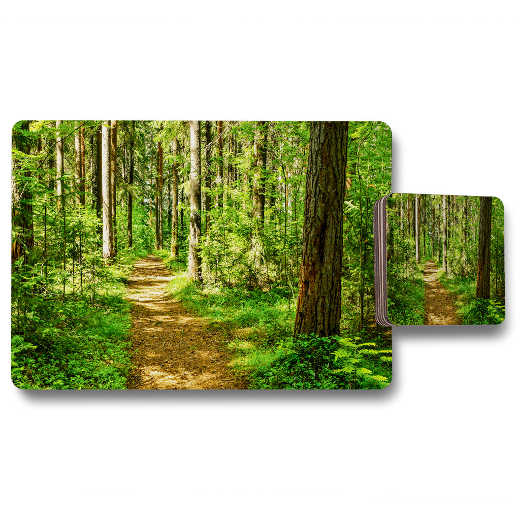 Forest trail scene. Woodland path (Placemat & Coaster Set)