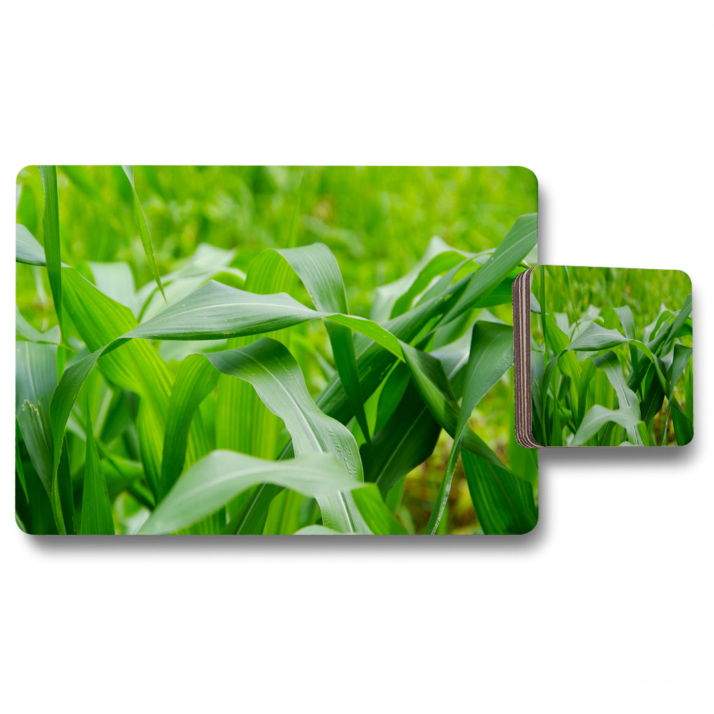 Green Leaves corn fields as background (Placemat & Coaster Set)