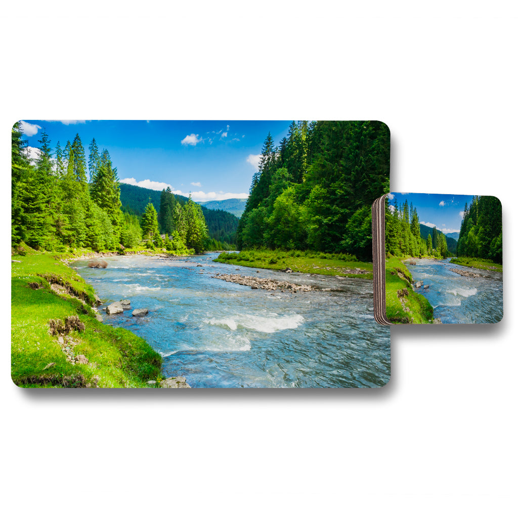 landscape with mountains, forest and a river in front. beautiful scenery (Placemat & Coaster Set)