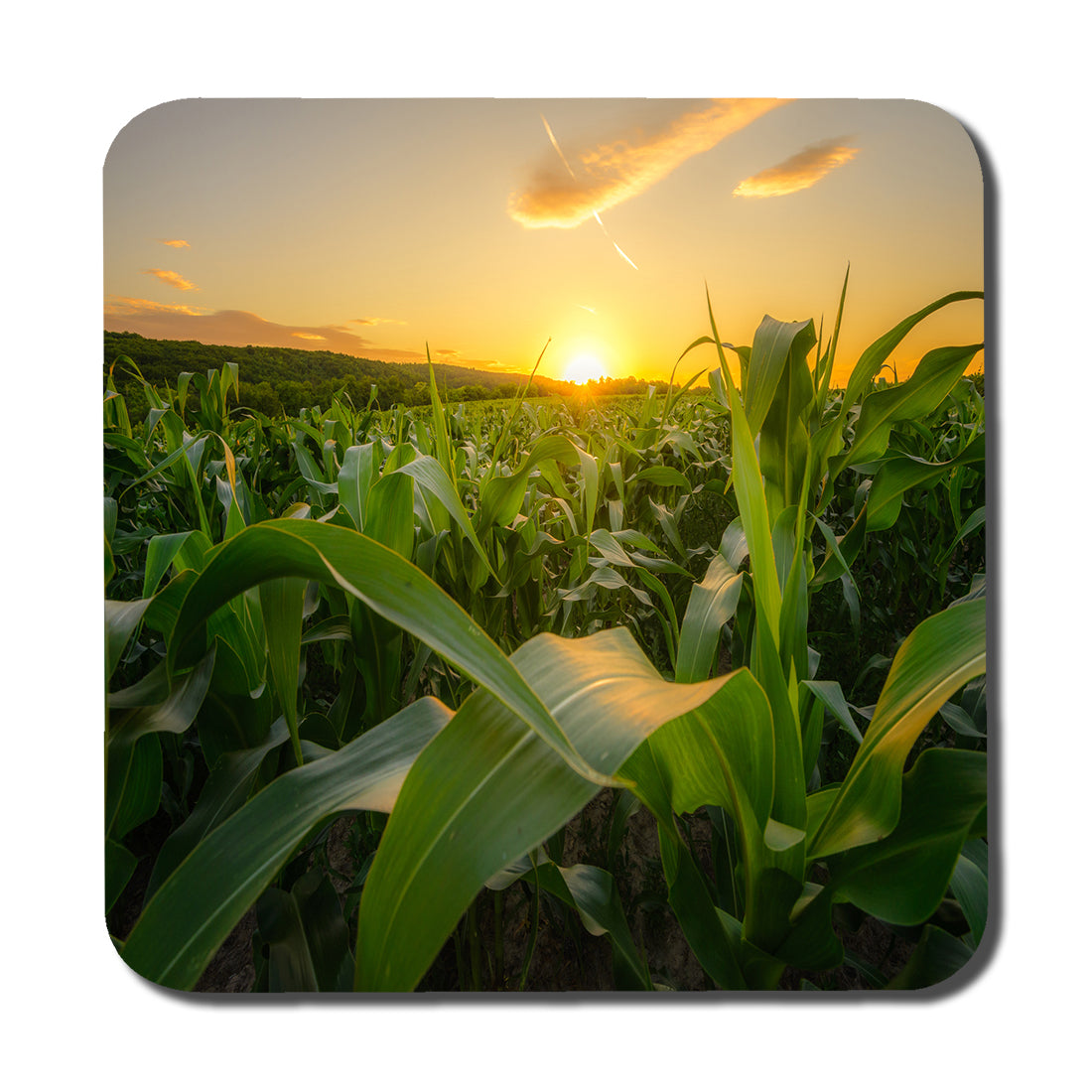 Young green corn growing on the field at sunset (Coaster) (Coaster)