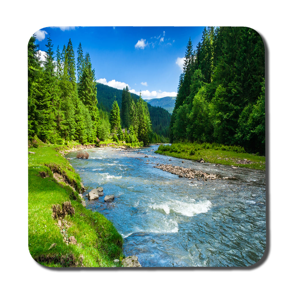 landscape with mountains, forest and a river in front. beautiful scenery (Coaster)