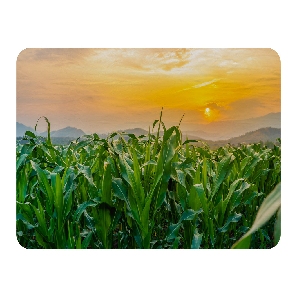 green corn field in agricultural garden and light shines sunset (Blanket)
