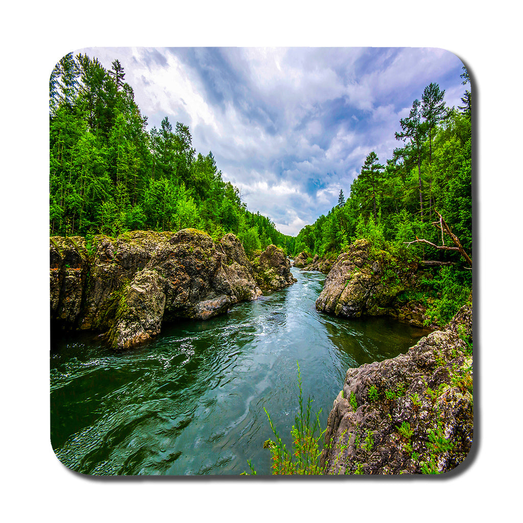 landscape with mountains, forest and a river in front. beautiful scenery (Blanket)
