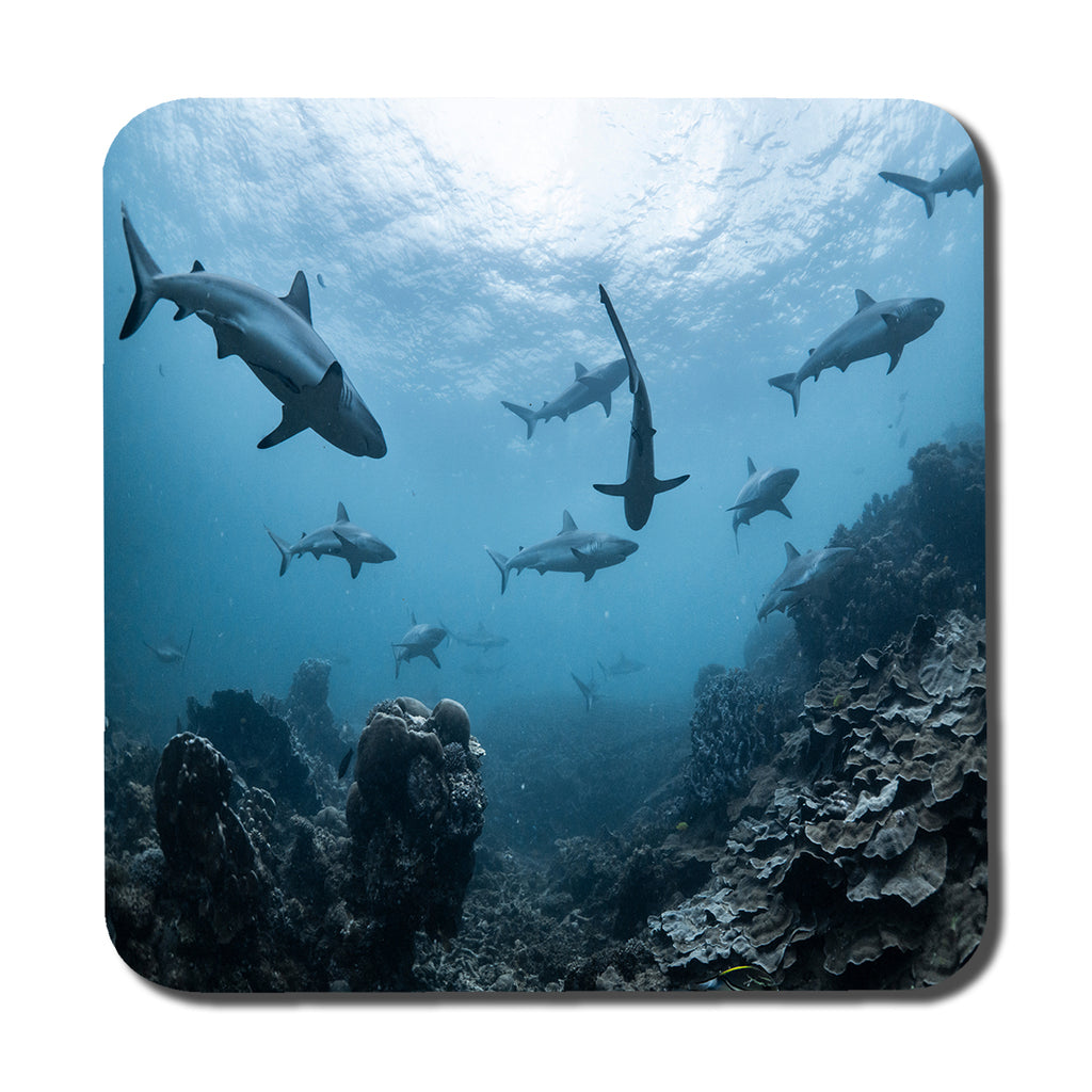 Schooling grey reef sharks, Ningaloo reef, Western Australia (Coaster)