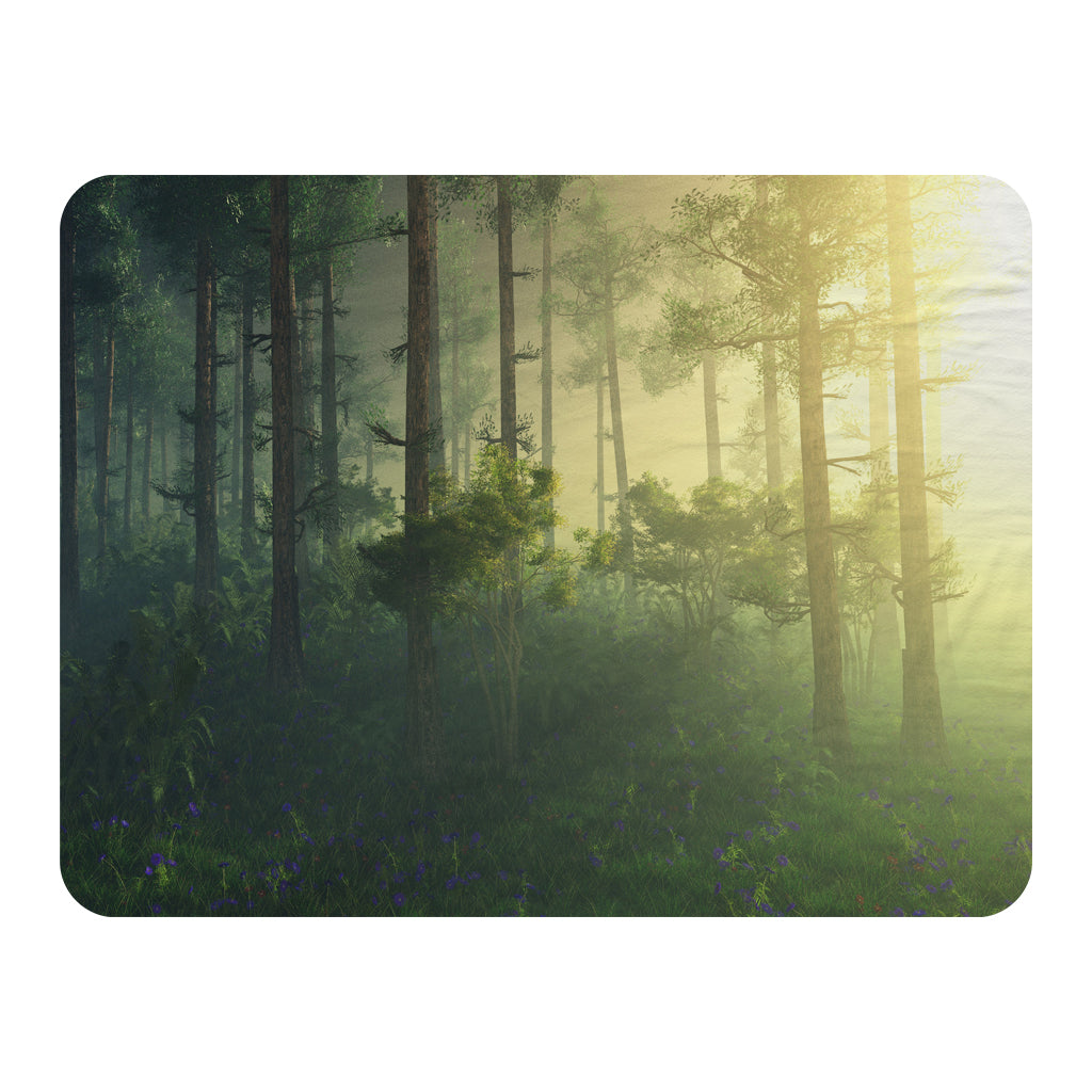 Forest in the morning in a fog in the sun, trees in a haze of light, glowing fog among the trees (Blanket)
