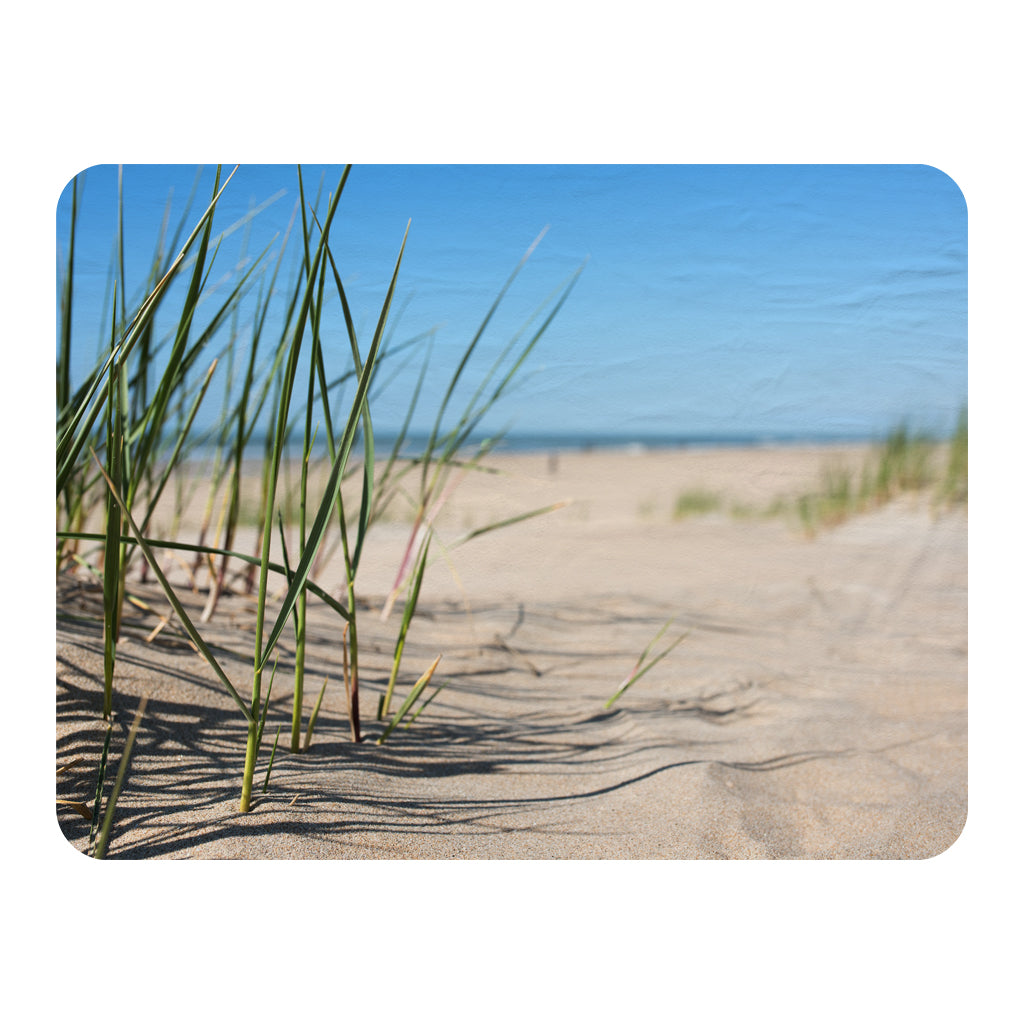 Beautiful sand dune fence by sea grass with sailboat on horizon (Blanket)