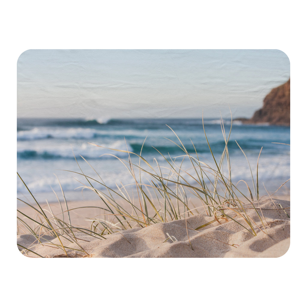 sunrise light on white sand beach with dune grass in Australia with turquoise surf waves of the pacific ocean (Blanket)