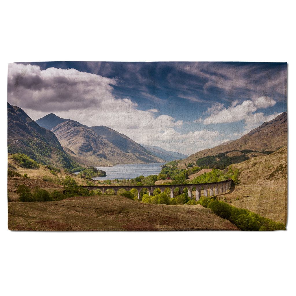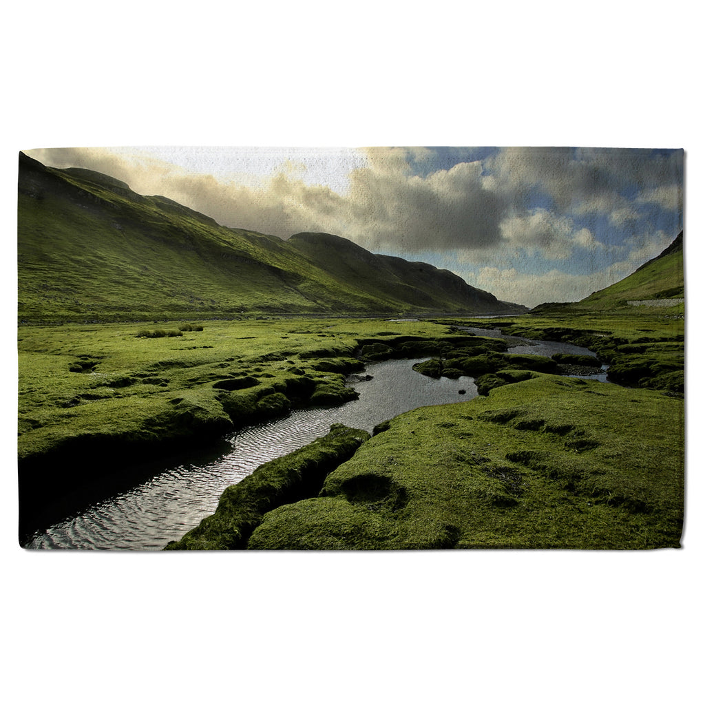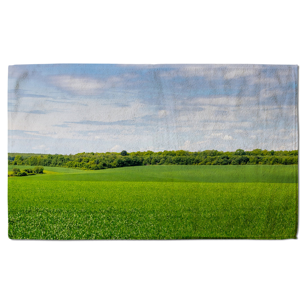 Summer landscape with hilly green field and forest in the distance (Bath Towel)