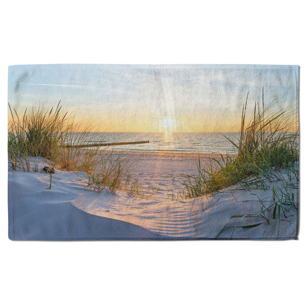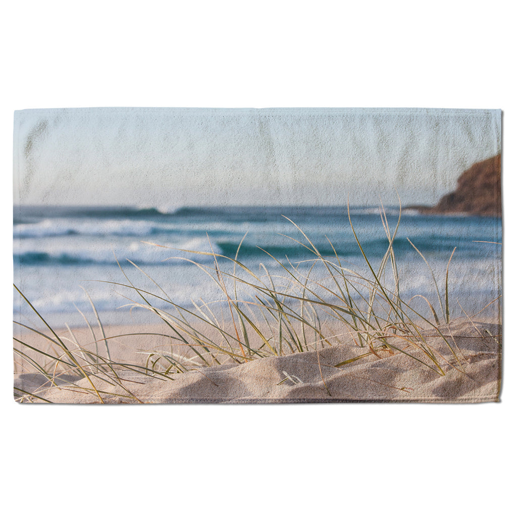 sunrise light on white sand beach with dune grass in Australia with turquoise surf waves of the pacific ocean (Bath Towel)