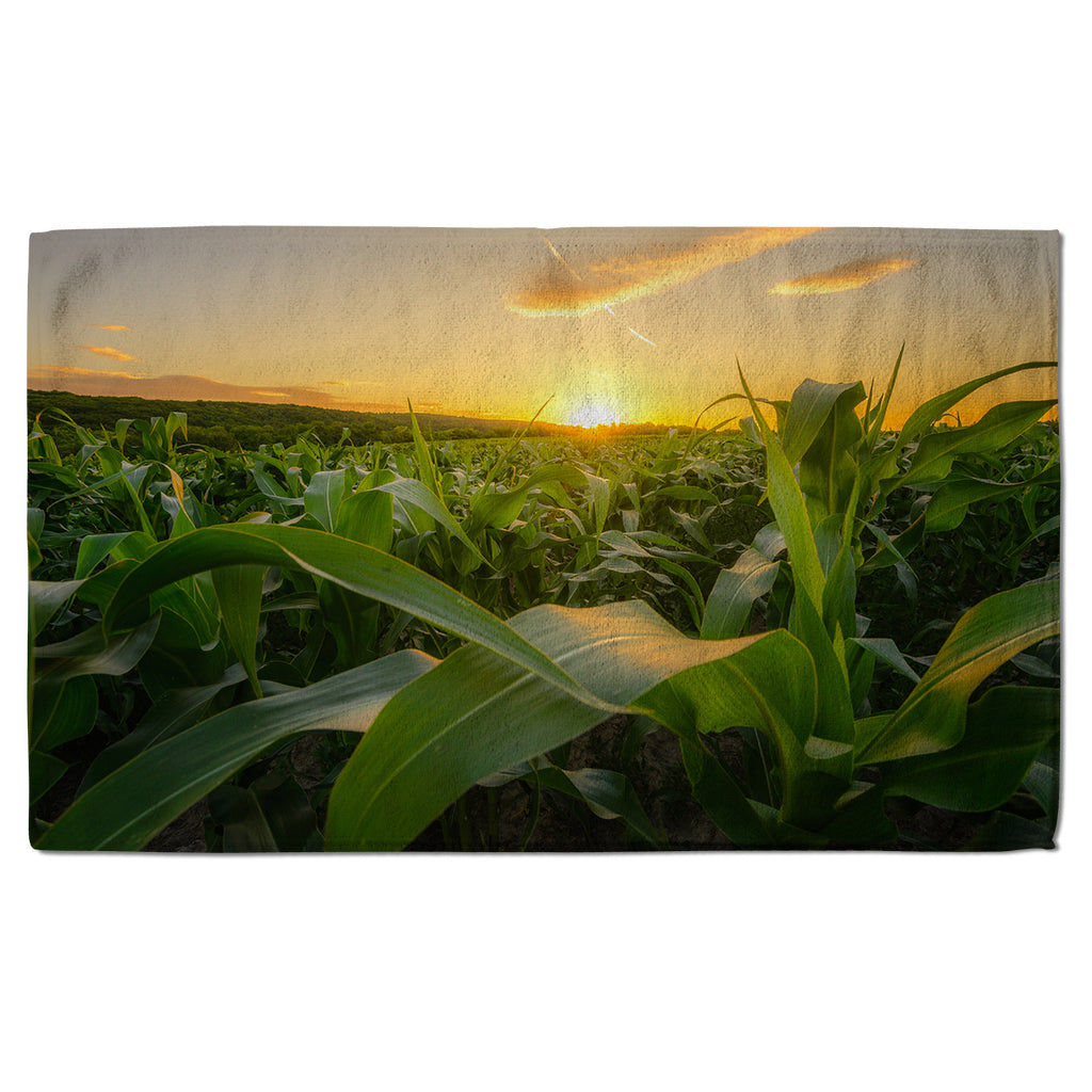 Young green corn growing on the field at sunset (Bath Towel) (Bath Towel)