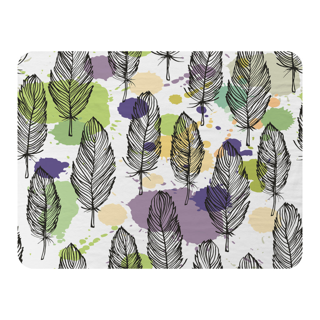 sketchy leaves scattered on hand drawn lines on white background (Blanket)
