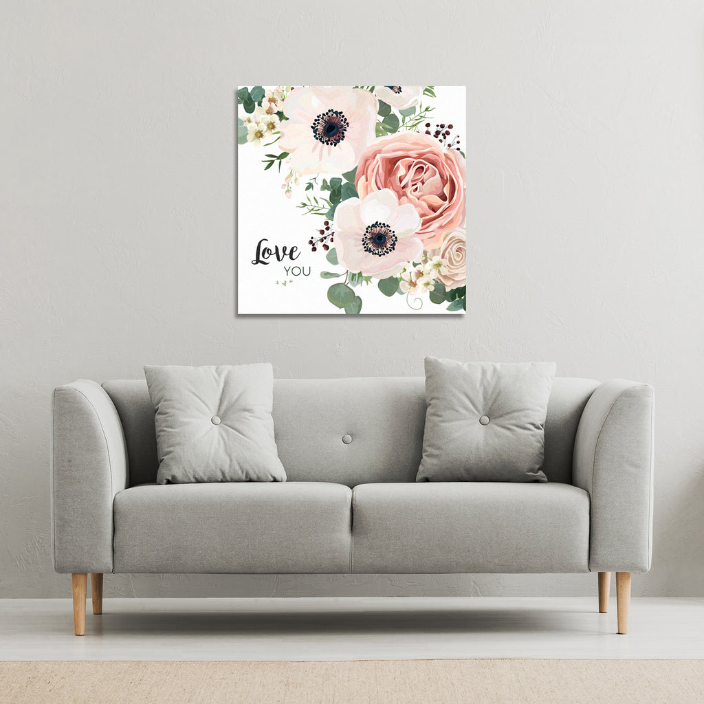 Garden Flower, Pink Peach Rose, White Anemone (Canvas Print)
