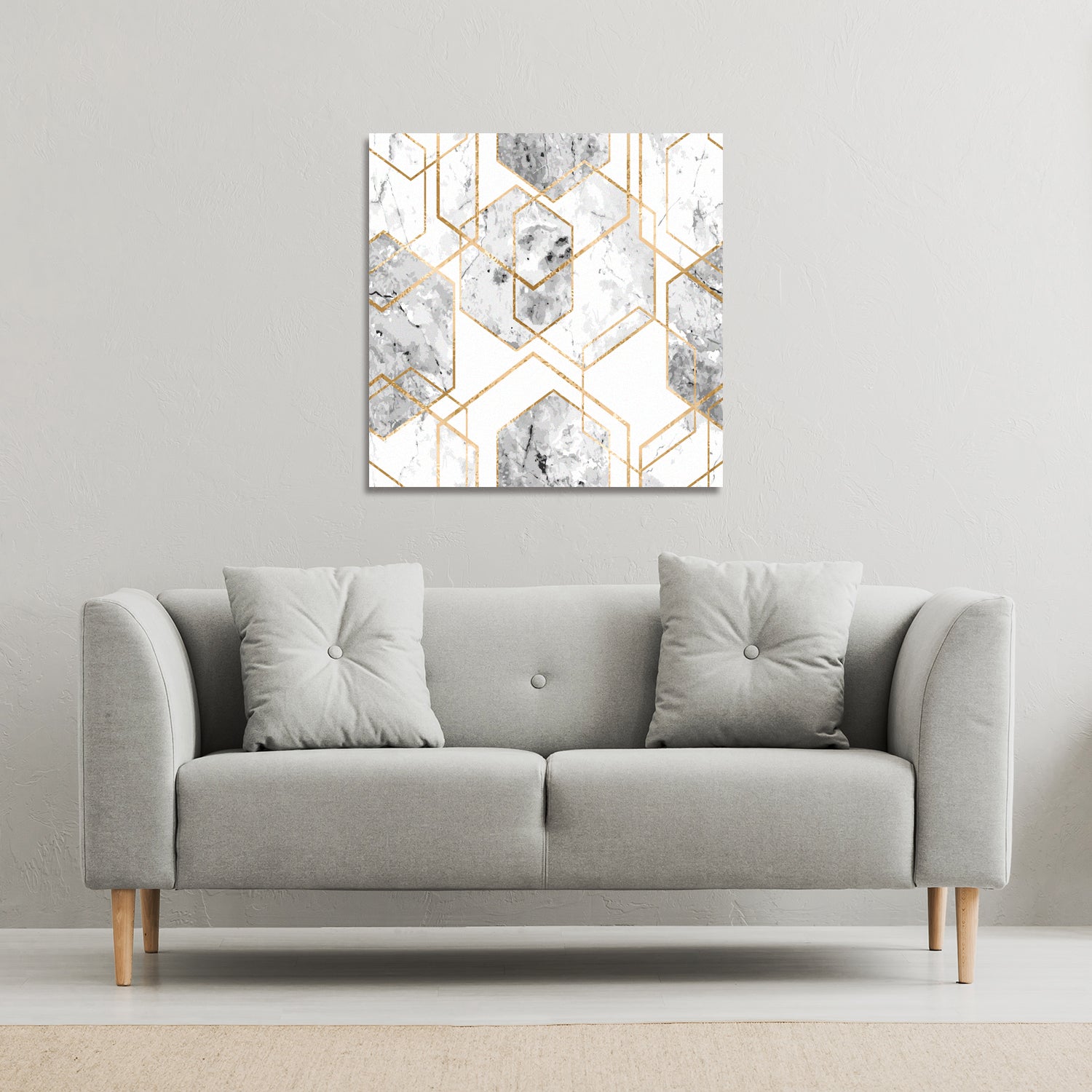 Geometric marble pattern with gold glitter (Canvas Print)