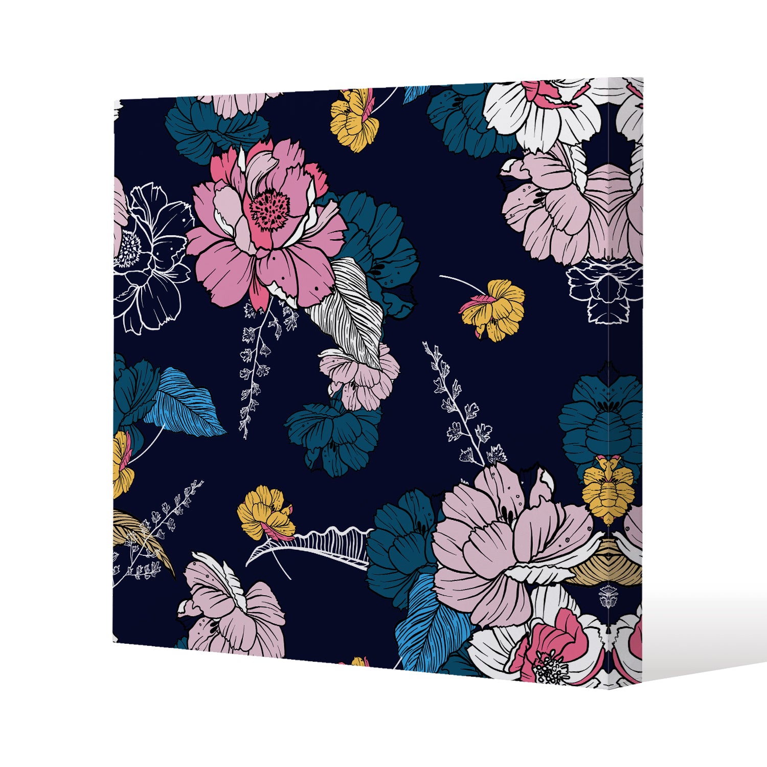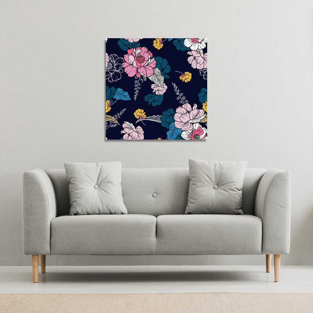 Pink Flowers on Navy (Canvas Print)