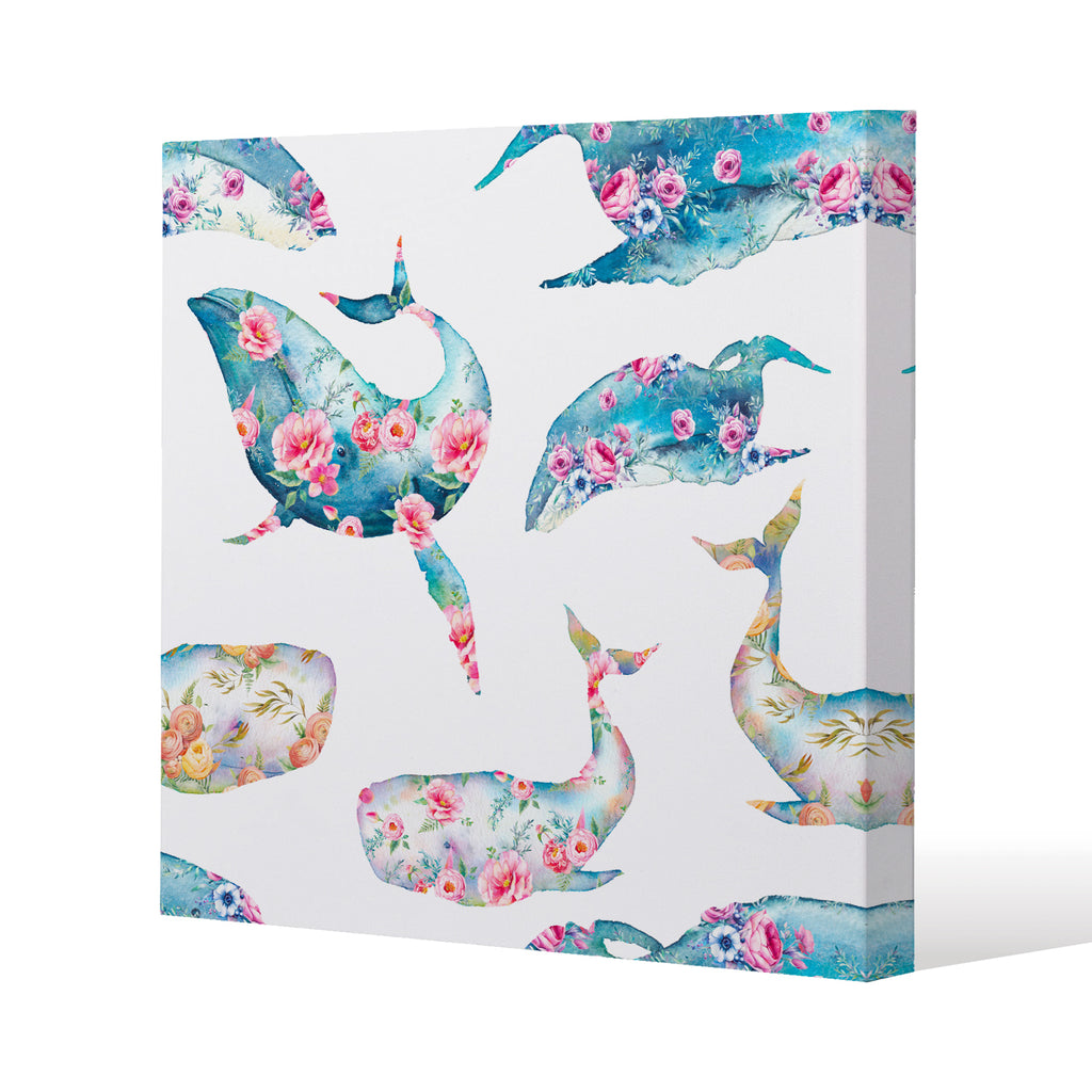 Whale with flowers (Canvas Print)