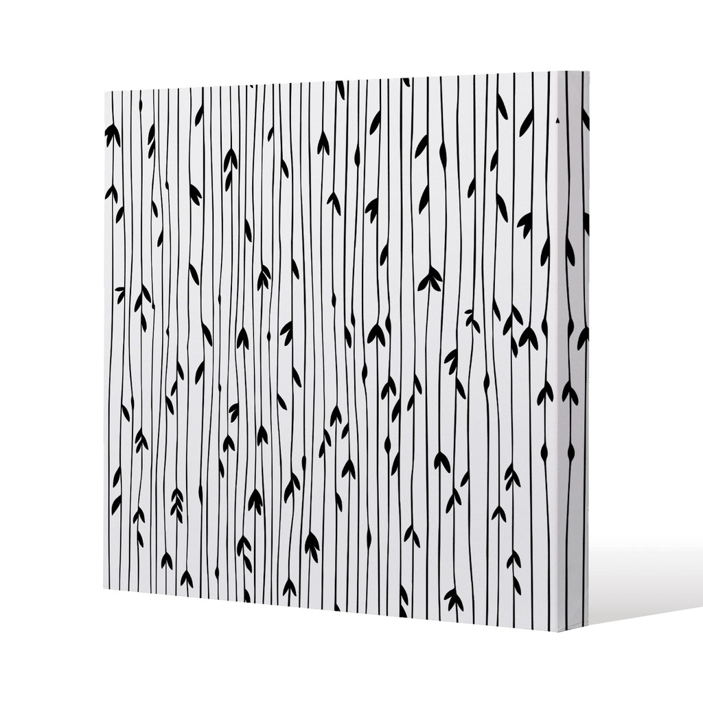 sketchy leaves scattered on hand drawn lines on white background (Canvas Print)