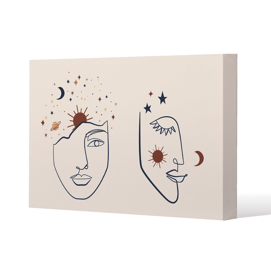 Celestial elements like stars, moon, sun and planets (Canvas Print)