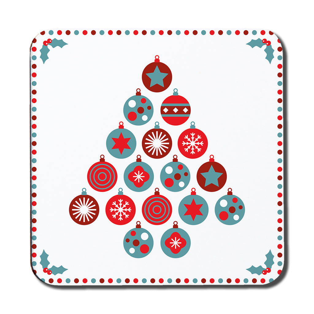 Vintage christmas baubles with merry christmas (placemat & coaster set)