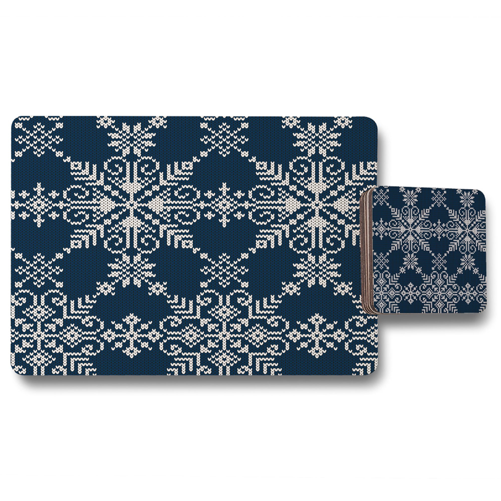 Knitted pattern of white snowflakes (placemat & coaster set) is backordered and will ship as soon as it is back in stock.
