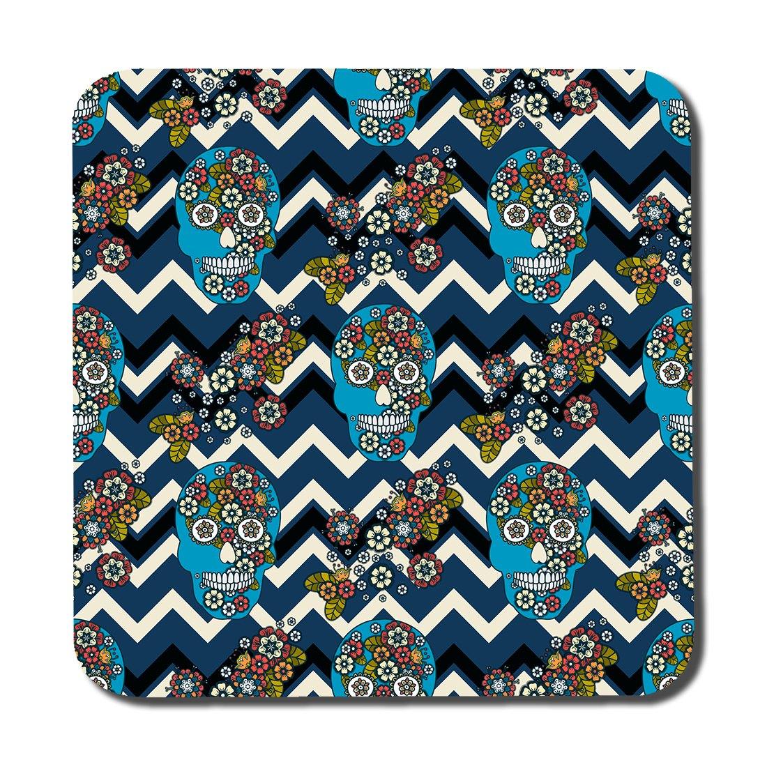 Embroidery colorful simplified ethnic skull Blue pattern (Coaster)