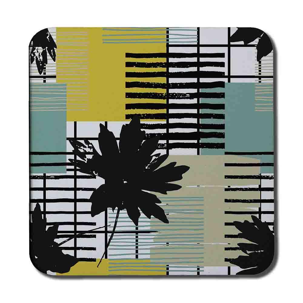 Geometric Shape & Leaf Print in Yellow & Green (Coaster)