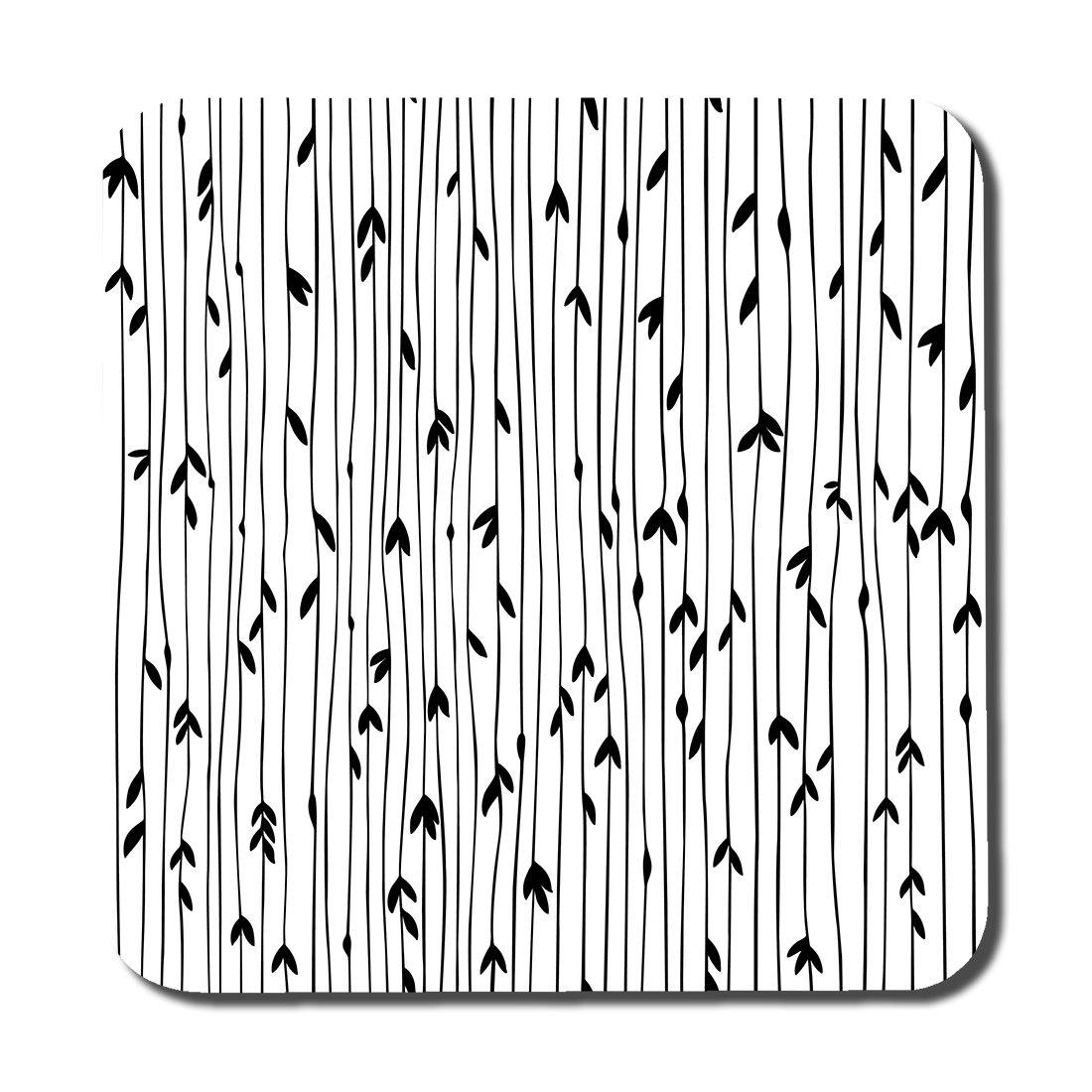 sketchy leaves scattered on hand drawn lines on white background (Coaster)