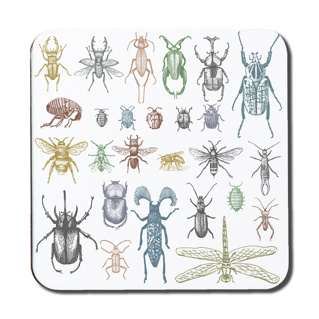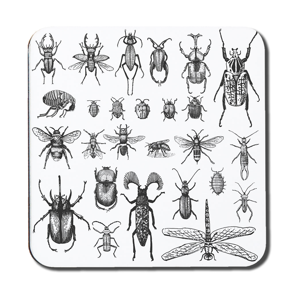 big set of insects bugs beetles and bees, fleas many species in vintage old hand drawn style (Coaster)