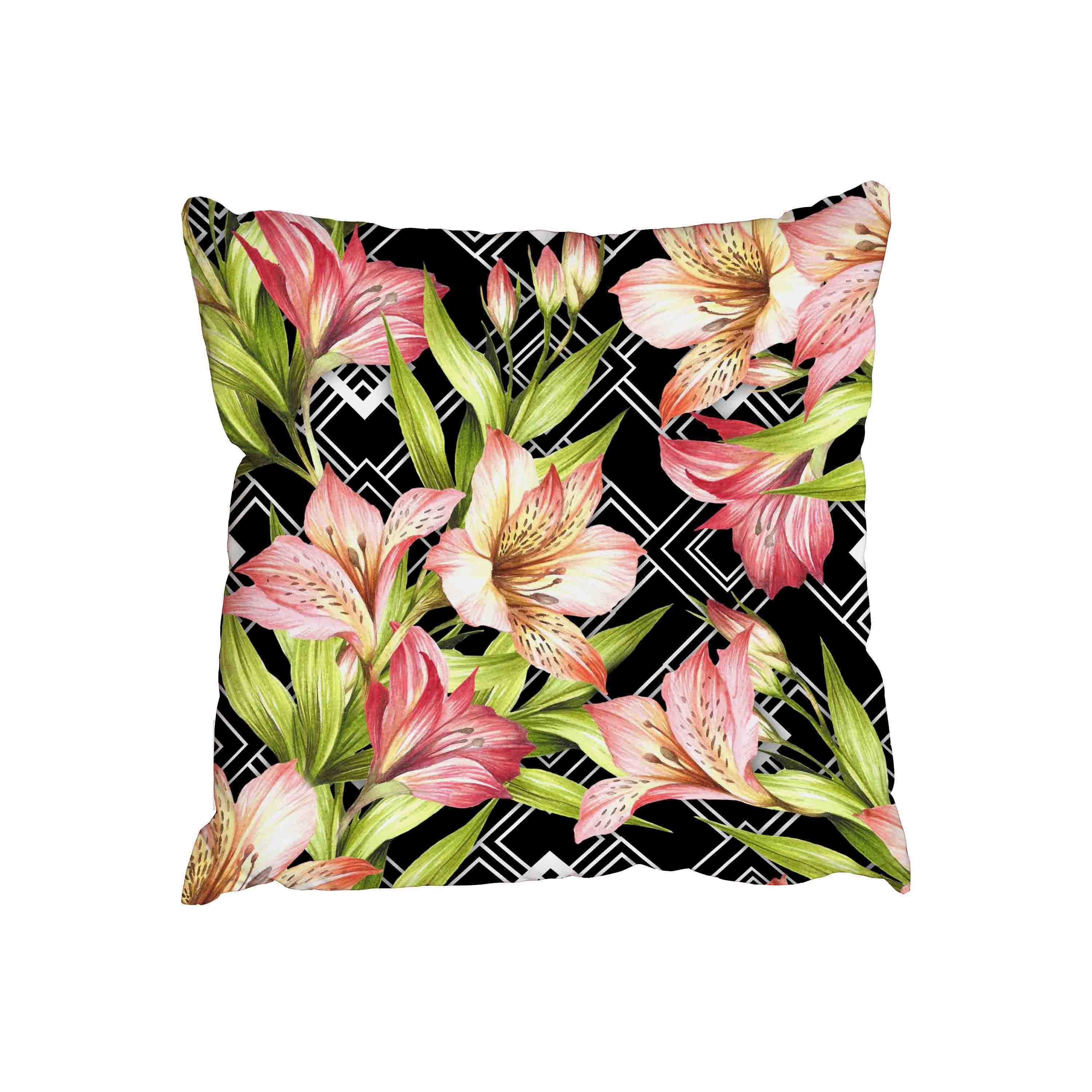 Cushions - Alstroemeria flowers on abstract white black geometric background (Cushion)