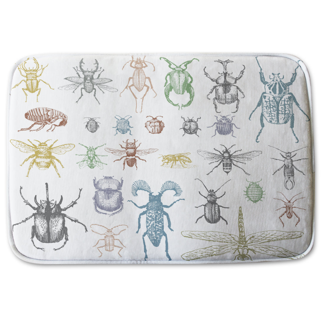 big set of insects bugs beetles and bees many species in vintage old hand drawn style (Bathmat)