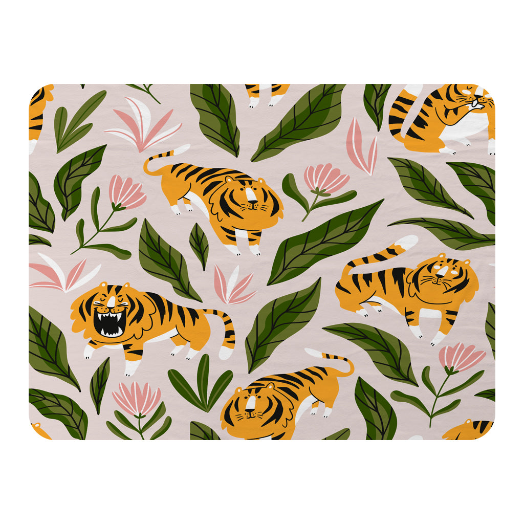 Hand drawn dinosaurs and tropical leaves and flowers. (Blanket)
