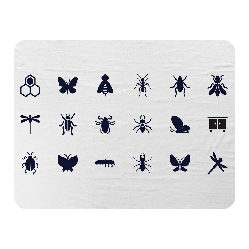 big set of insects bugs beetles and bees, fleas many species in vintage old hand drawn style (Blanket)