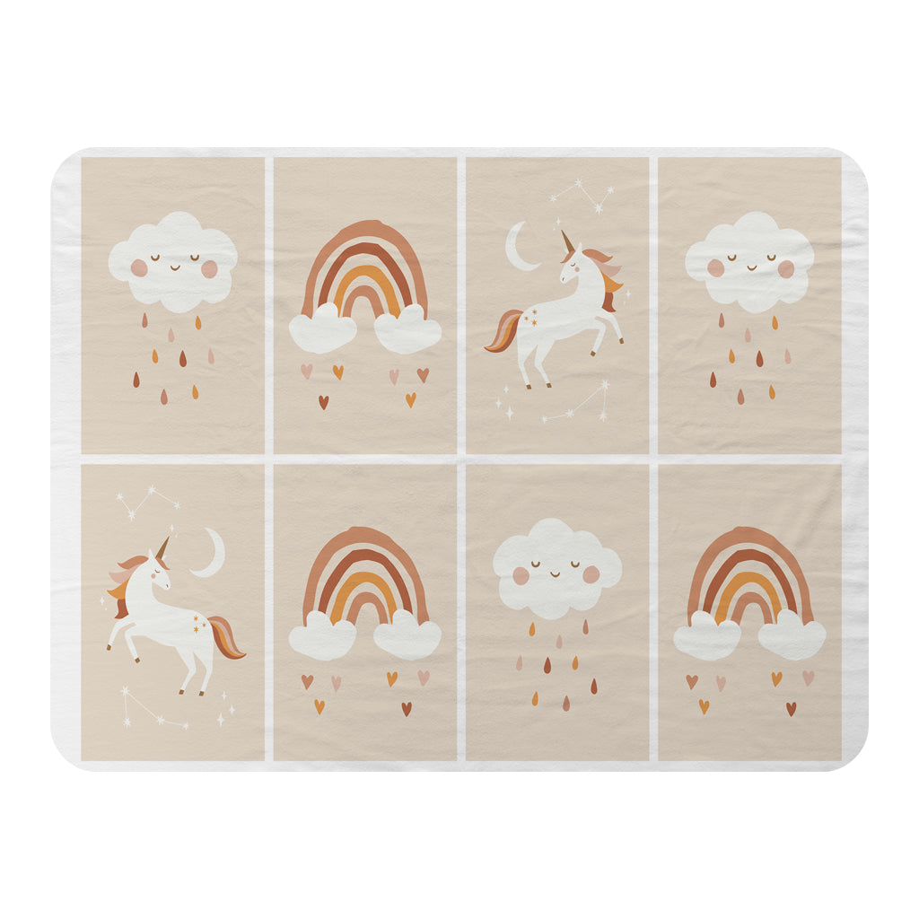 Scandinavian Style Kids Room Decoration. Cute Hand Drawn Unicorn, Rainbow and Cloud (Blanket)