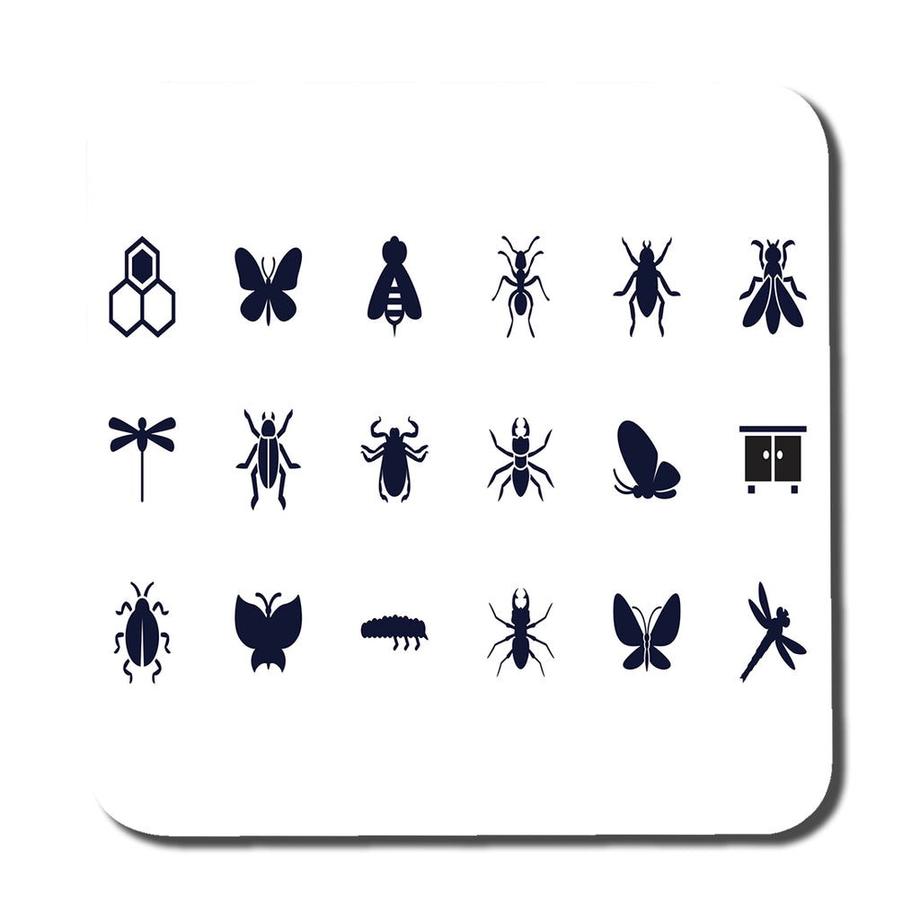 big set of insects bugs beetles and bees, fleas many species in vintage old hand drawn style (Coaster)