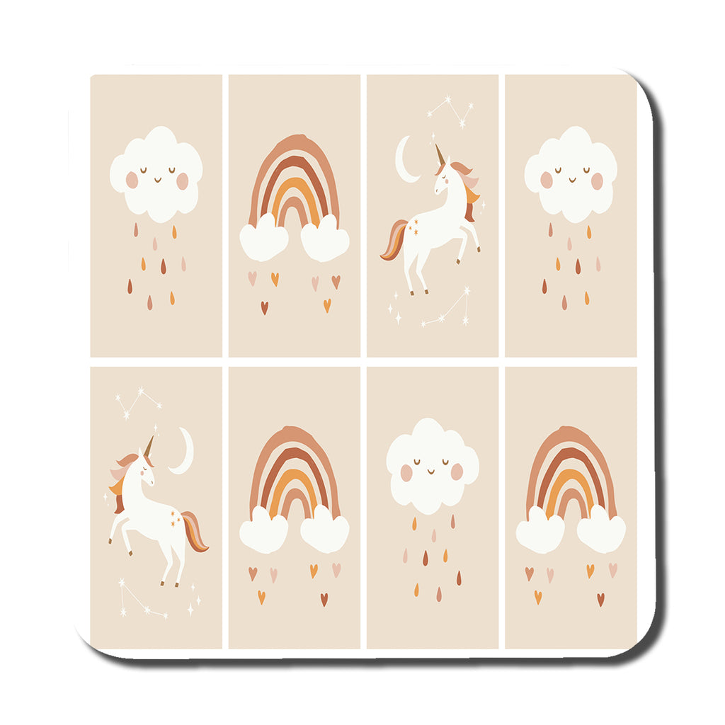 Scandinavian Style Kids Room Decoration. Cute Hand Drawn Unicorn, Rainbow and Cloud (Coaster)